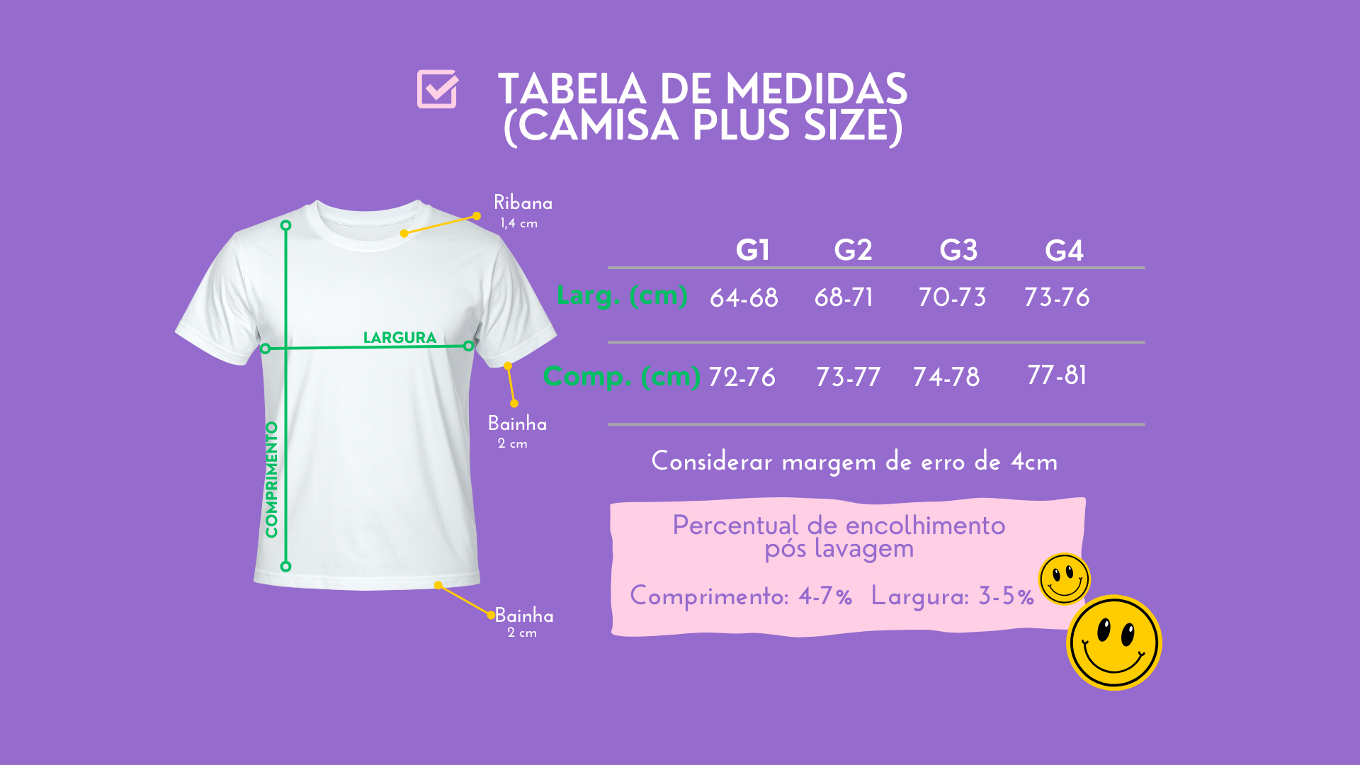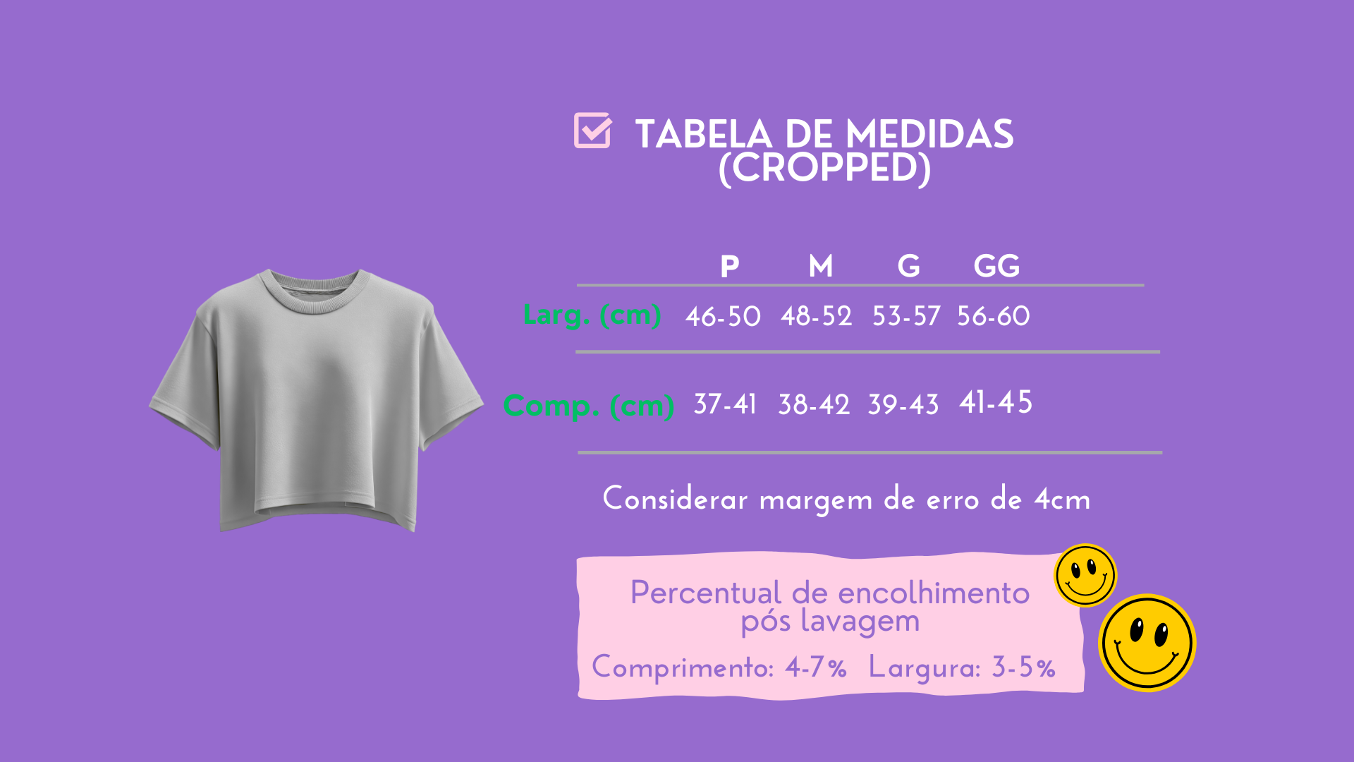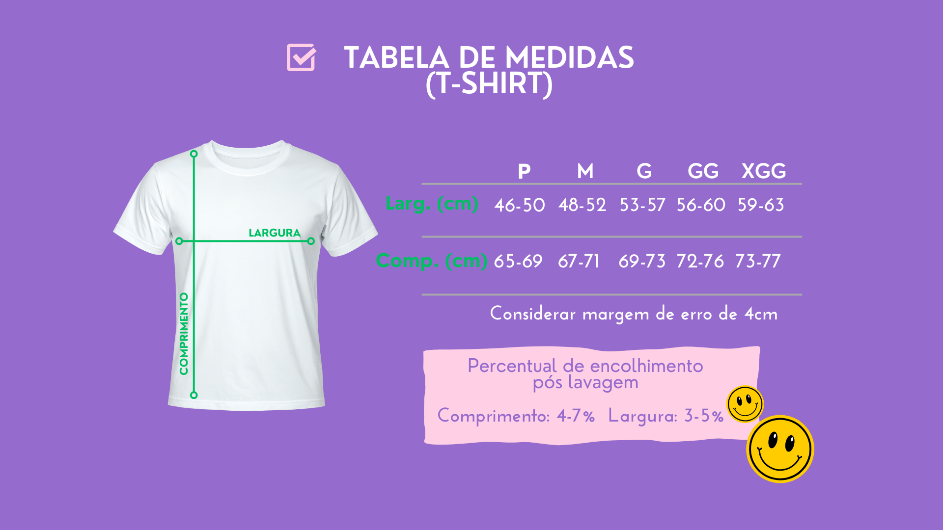 Consulte nossa tabela de medidas abaixo.